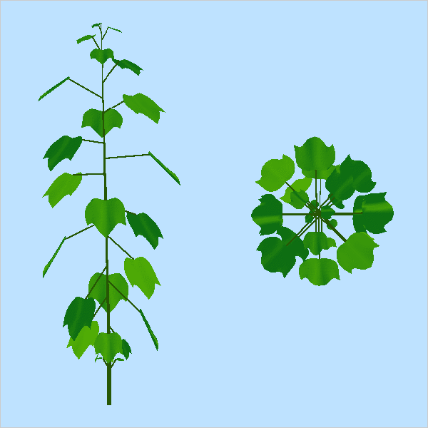 Complete 'okra leaf' variety shoot system, side and top views. (44k)